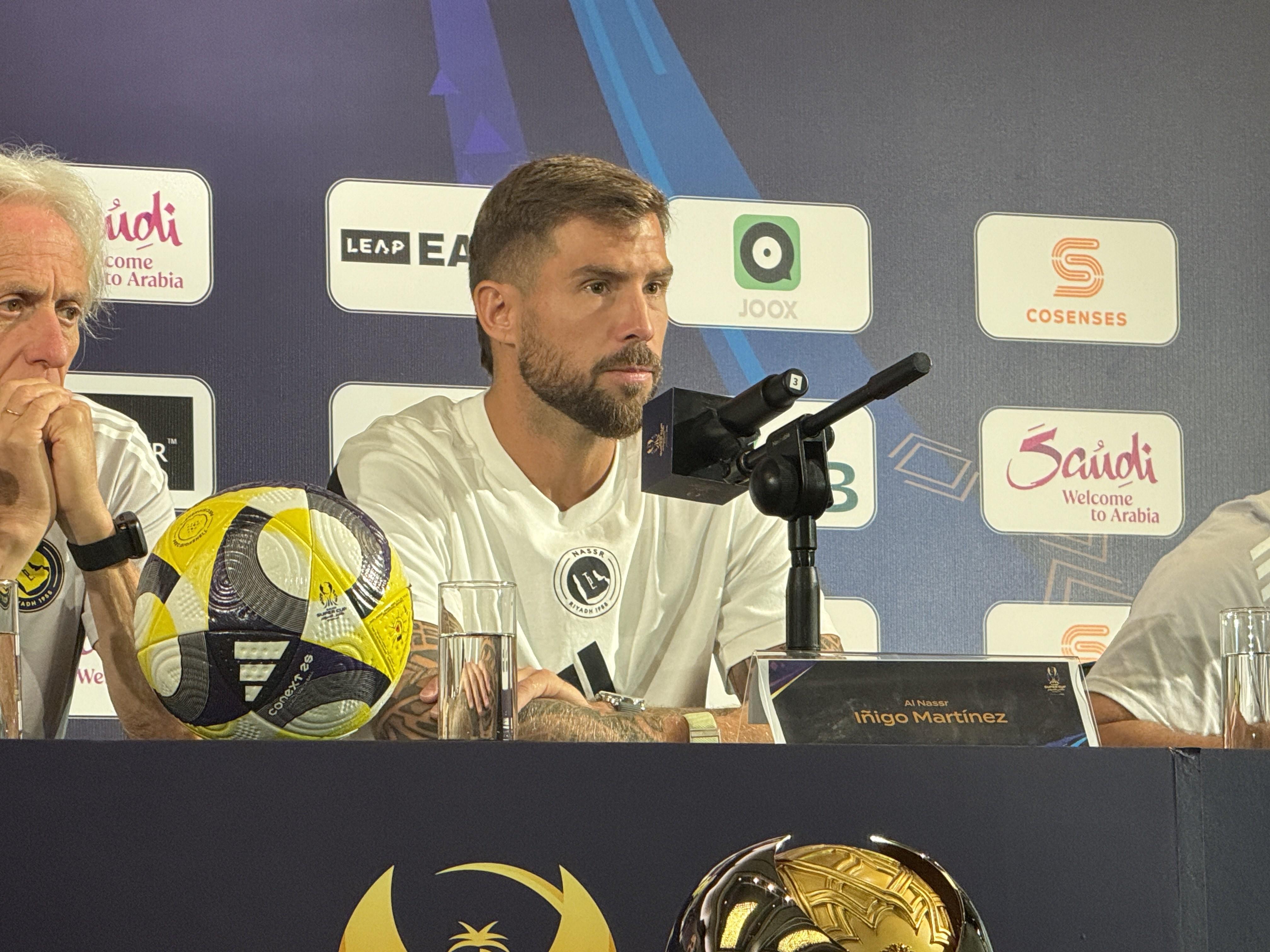 北京时间8月22日,沙超杯决赛,利雅得胜利将在香港大球场对阵吉达国民。早些时候,利雅得胜利新援伊尼戈-马丁内斯出席了赛前新闻发布会。