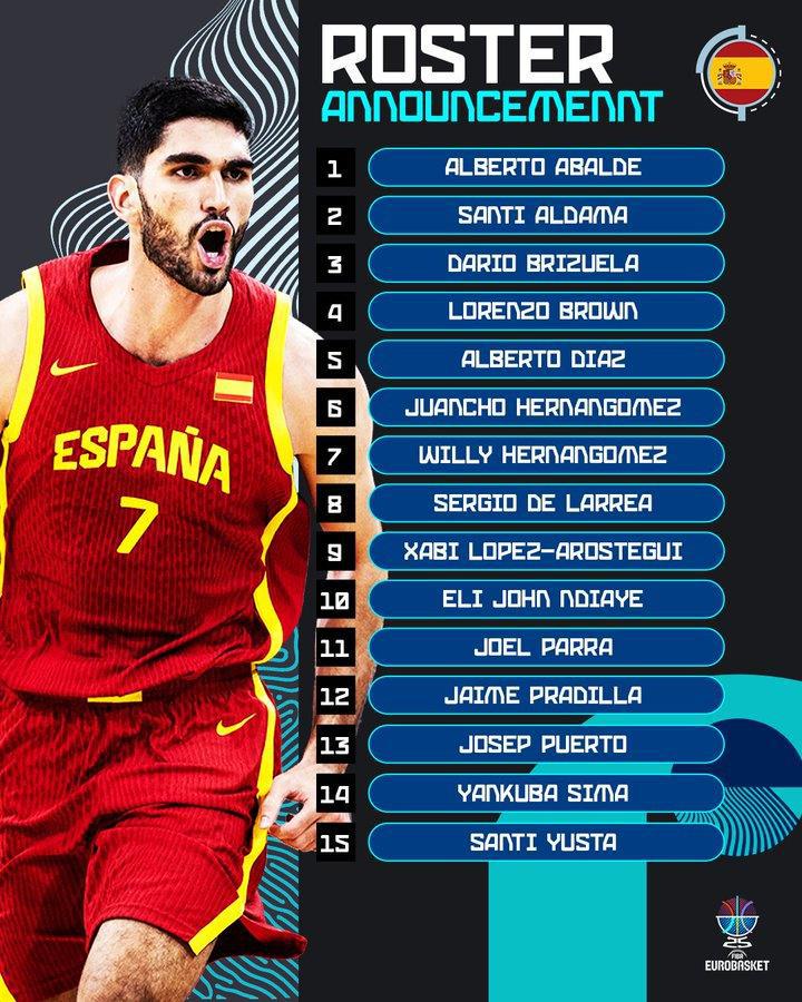 星光暗淡!西班牙公布欧锦赛15人名单:现役NBA球员仅阿尔达马
