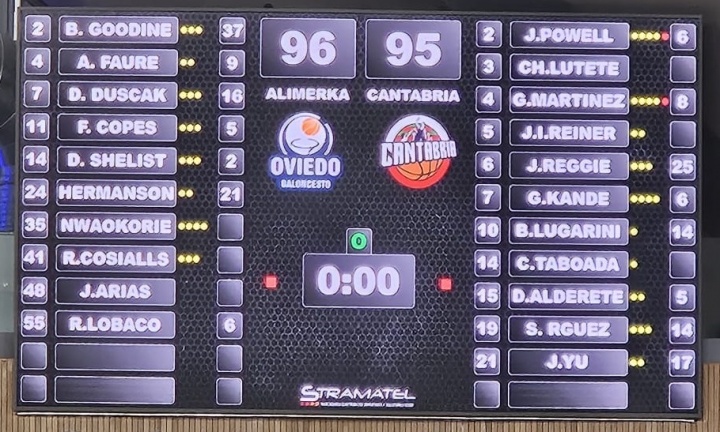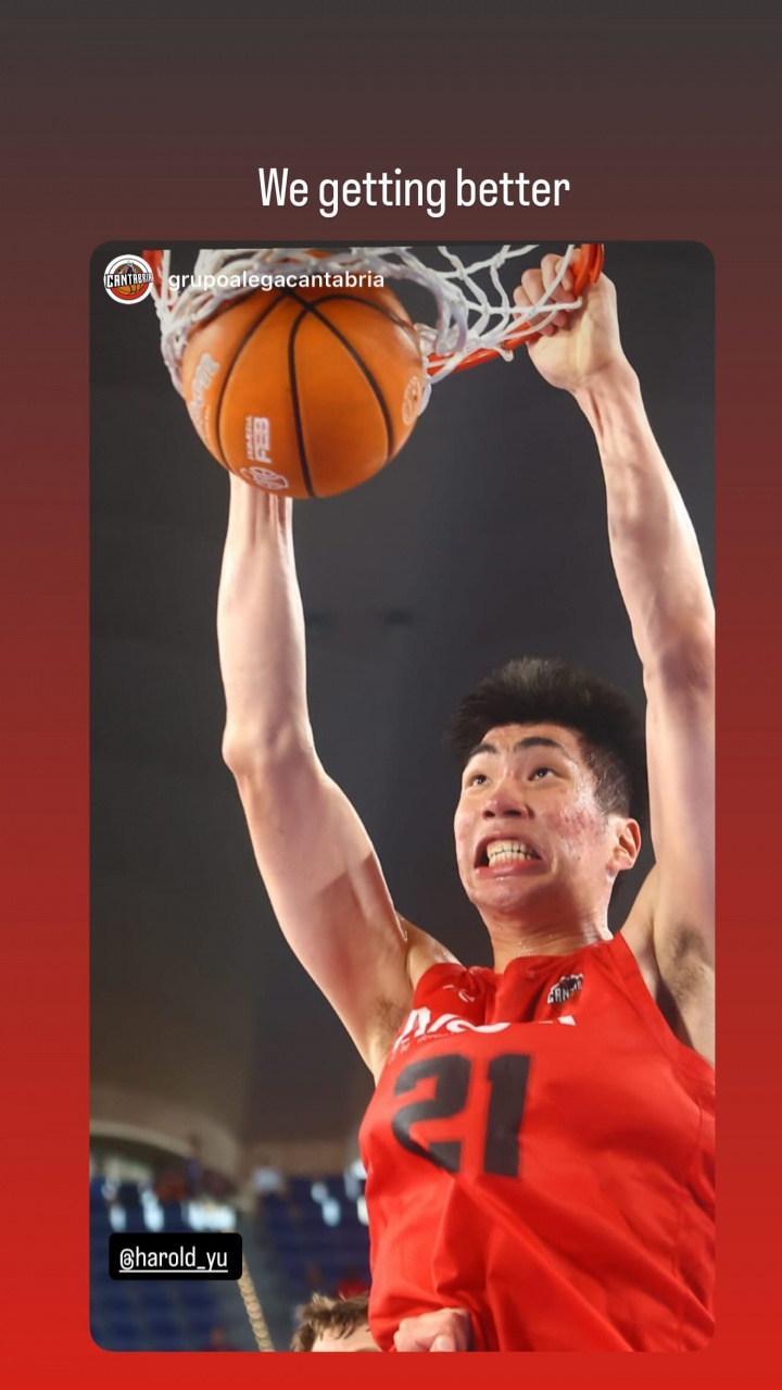 从毕尔巴鄂租借至Alega Cantabria的余嘉豪发挥出色,全场贡献17分,并在第四节关键时刻投进一记三分球。